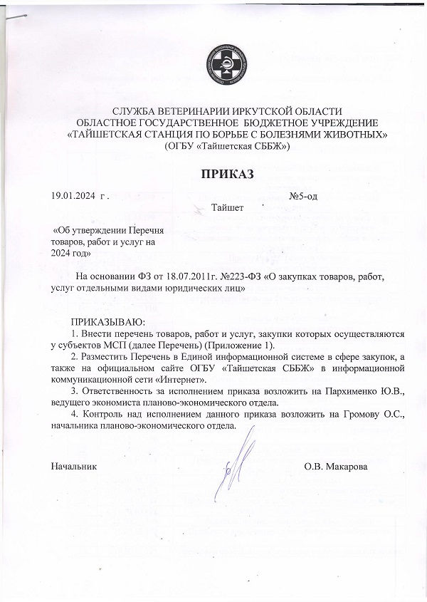 Приказ "Об утверждении Перечня товаров, работ и услуг на 2024 год"