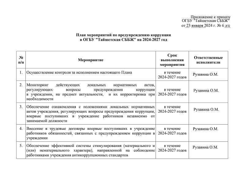 План мероприятий по предупреждению коррупции на 2024-2027 год